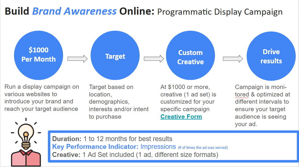 In order to kickstart a conversation or a sale with your advertising client, below (and attached as a PDF) 4 different digital sales 1 pagers to help explain the digital sales process:
